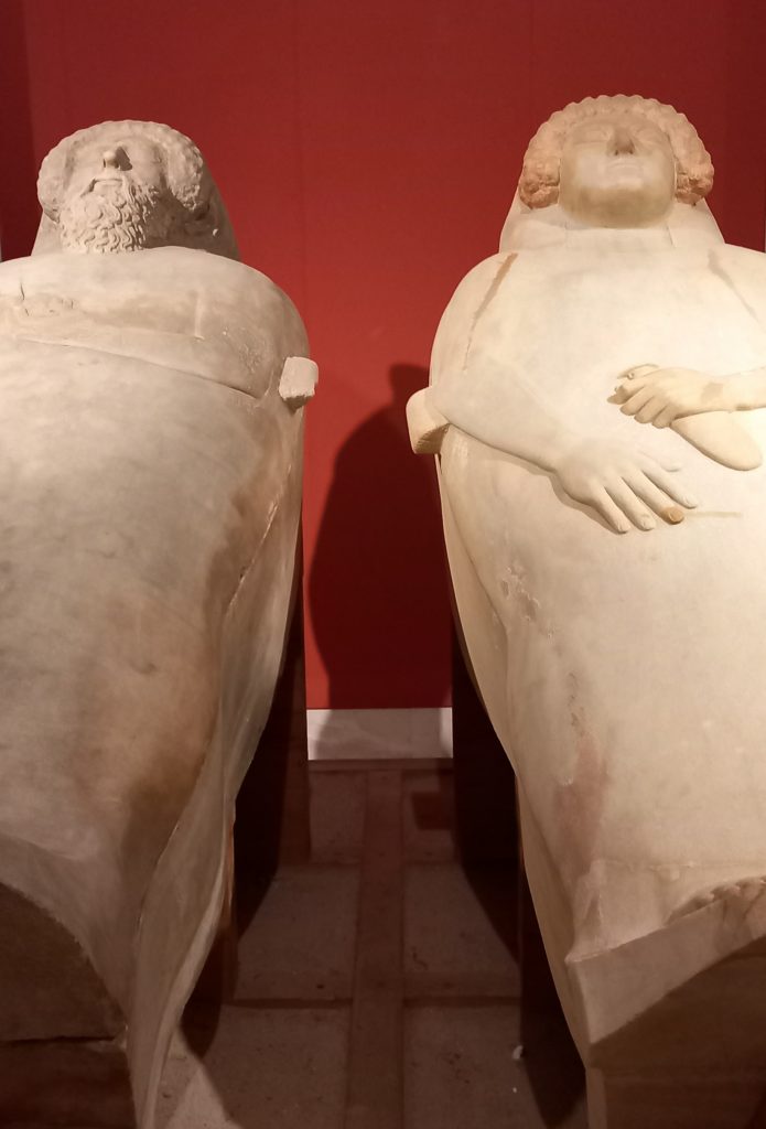 Una de las leyendas gaditanas dice que, tras el descubrimiento del sarcófago maculino, se creía que aparecería su pareja femenina, pues aquel personaje de barba y cabellos rizados no podía descansar solo. Una vecina aseguraba que la buscada dama se le aparecía en sueños para pedirle su ayuda, pues estaba cerca. Tiempo después, ya fallecida la señora y derruida su vivienda, se procedió a construir de nuevo en el solar de la calle Ruiz de Alda y, casualidad o no, allí estaba la noble fenicia aguardando su rescate bajo tierra. Leyenda aparte, los sarcófagos son un ejemplo único en la Península y en el mundo, comparables a los Sicilia y Sidón. Otra curiosidad es el resto de pintura rojiza en el peinado de la dama, ¿sería realmente pelirroja?